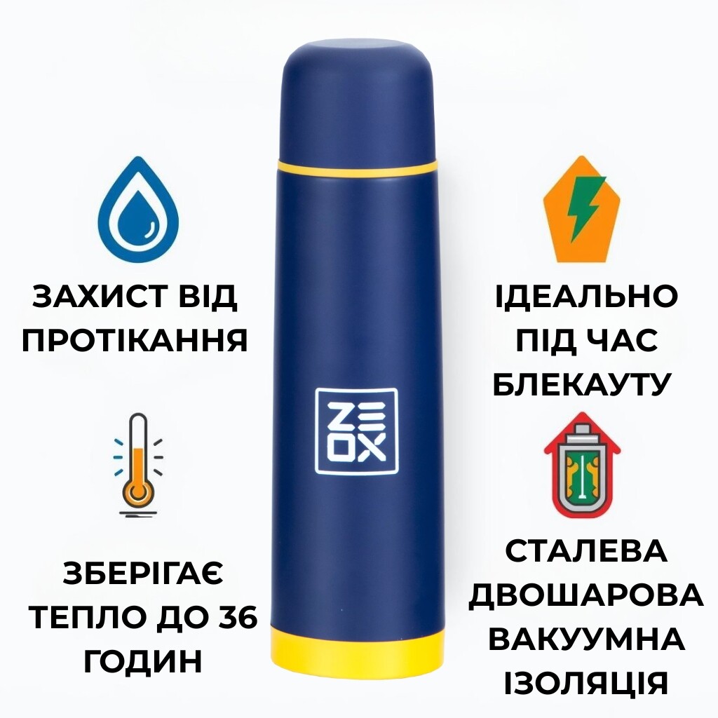 Завдяки двошаровій колбі з харчової нержавіючої сталі товщиною 0,12 мм, а також нержавіючому корпусу та якісній теплоізоляції, дарує можливість насолоджуватися гарячим чаєм у мороз або ж прохолодним напоєм у спеку — вдома, у дорозі, на роботі чи в укритті.